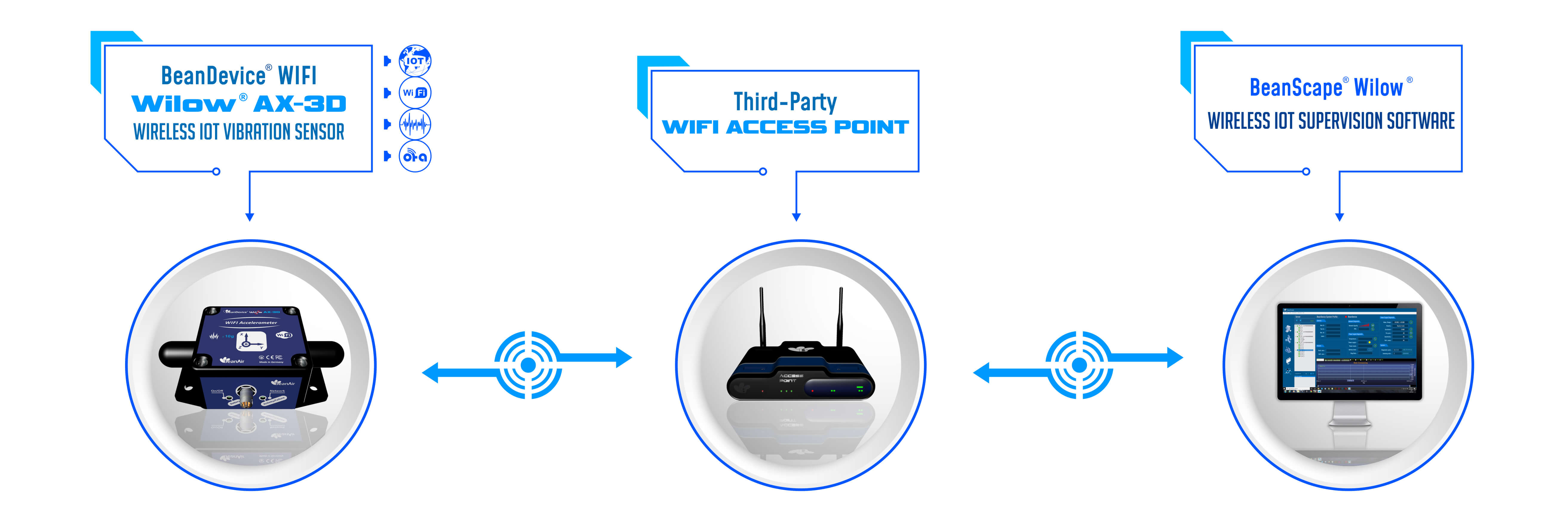 | Exemplul 1: BND-WILOW-2G-15B-BR - accelerometru cu senzori combinați Wifi ULP (domeniu de măsurare ±2g) și inclinometru (domeniu de măsurare ±15° bi-ax) cu montare pe suport la 90° Exemplul 2: BND-WILOW-10G- 30B-M - accelerometru cu senzori combinați Wifi ULP (domeniu de măsurare ±10g) și inclinometru (domeniu de măsurare ±30° bi-ax) cu montare cu magnet Exemplul 3: BND-WILOW-2G-15B-EHR-HG - accelerometru cu senzori combinați Wifi ULP (domeniu de măsurare ±2g) și inclinometru (domeniu de măsurare ±15° Bi-ax) , cu sursă de alimentare externă auxiliară compatibilă cu Energy Harvesting 8-24VDC, antenă cu câștig ridicat |
